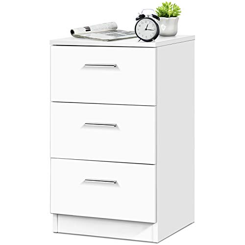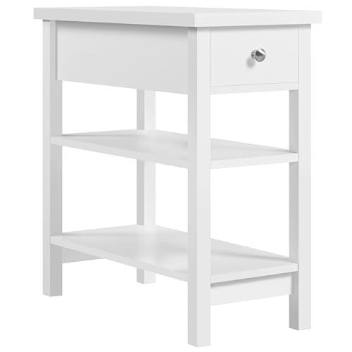 Yaheetech Nattbord, nattduksbord, sidobord av MDF, 3 nivåer, nattbord med 2 hyllor och lådor, modernt soffbord, telefonbord, hallbord för vardagsrum och sovrum, vitt