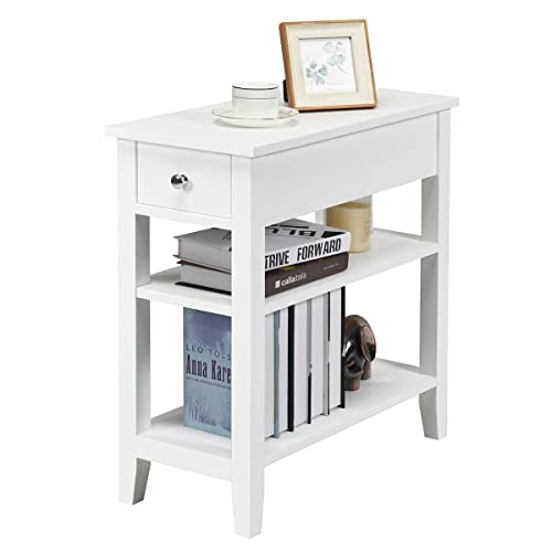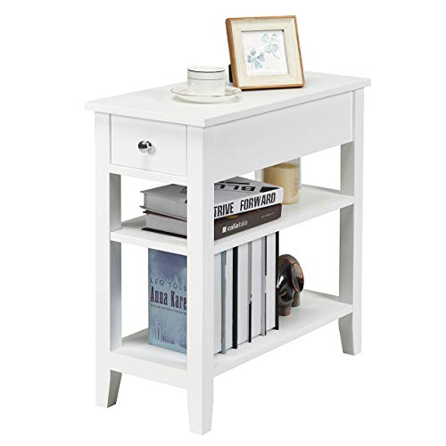 GIANTEX Konsolbord smalt, nattduksbord sidobord telefonbord trä, hallbord entrébord med låda och 2 hyllor, soffbord nattskåp telefonskåp skänk 60 x 29 x 61 cm (vit)