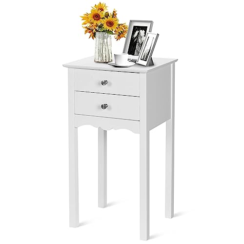 GOPLUS Nattduksbord Av Trä Med Lådor, Nattkonsol Sidobord Förvaringsbord Telefonbord, Färgval (Vit)