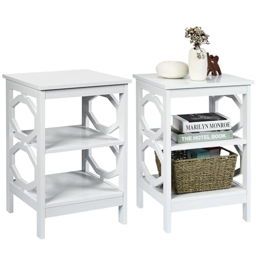 GIANTEX Uppsättning av 2 Nattduksbord, Sidobord 3 Nivåer, Nattkonsol, Soffbord Korridor Telefonbord för Vardagsrum Sovrum 40 x 40 x 61 cm Vit