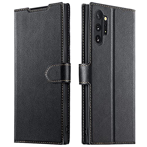 ELESNOW fodral kompatibelt med Samsung Galaxy Note 10 Plus/Note 10+/5G, PU-läder flip plånbok telefonfodral för Samsung Galaxy Note 10 Plus/Note 10+/5G (svart)