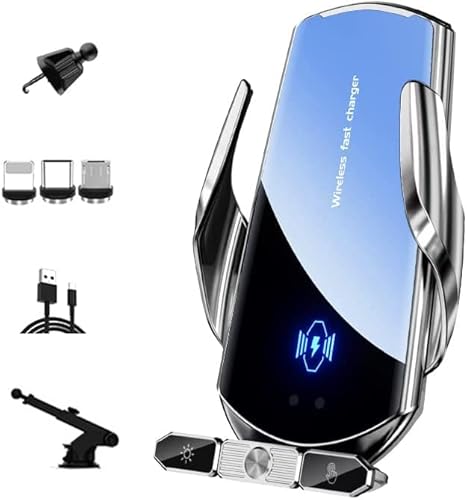 Trådlös telefonhållare för bil, snabbladdning, 15 W, smart automatisk montering, luftgaller, trådlös laddning, magnetiskt huvud, USB-laddning inkl