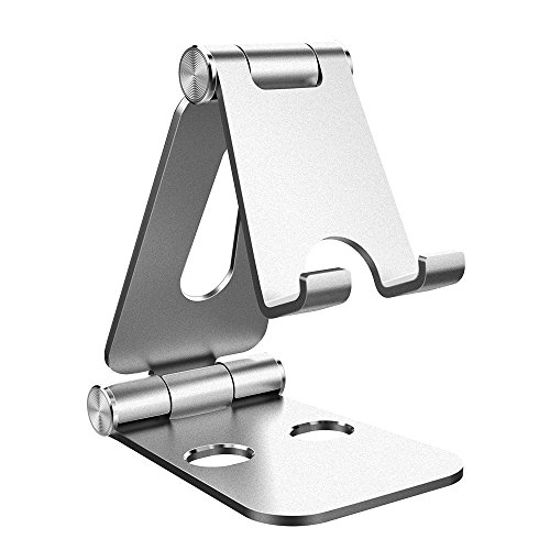 Simpeak surfplattestativ, dubbelt vikbart aluminiumstativ, universell telefonstativ, hållare, kompatibel med iPhone, iPad och alla 4-10-tums enheter, silver