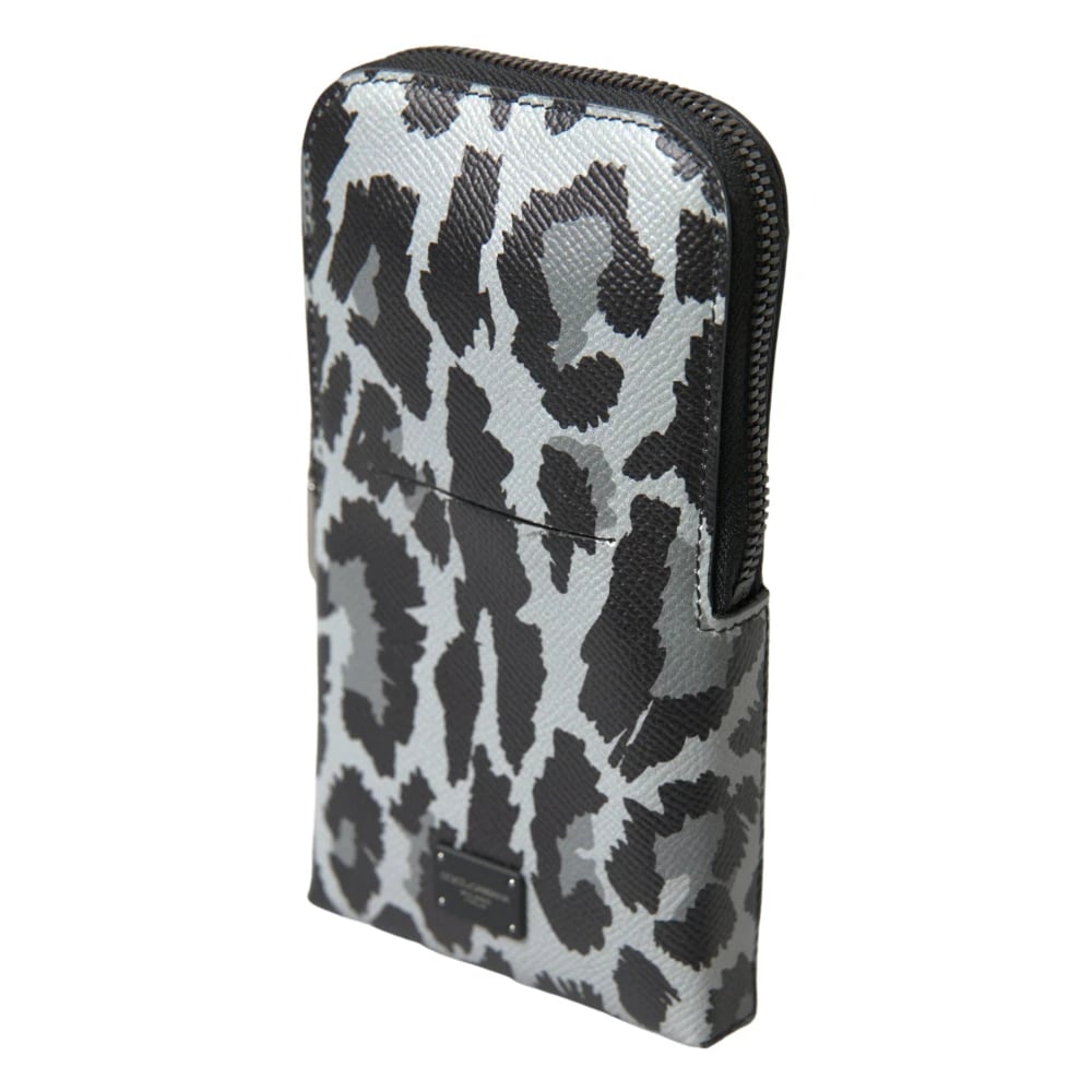 Dolce & Gabbana, Accessoarer , Herr, ONE Size, Läder, Grå Leopard Läder Crossbody Telefonväska