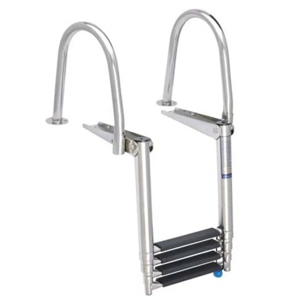 TREPPE - 4-stegs båtstege, hopfällbar båtstege i rostfritt stål med marin ingång teleskopisk stege, 200 kg kapacitet