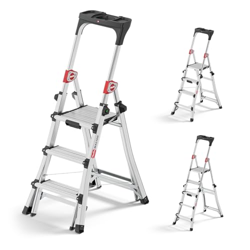 Jopassy Hopfällbar teleskopstege i aluminium, 2,6 meter utdragbar stege, halkfri aluminiumstege, trappstege, multifunktionsstege, utdragbar aluminiumteleskopstege med 150 kg lastkapacitet