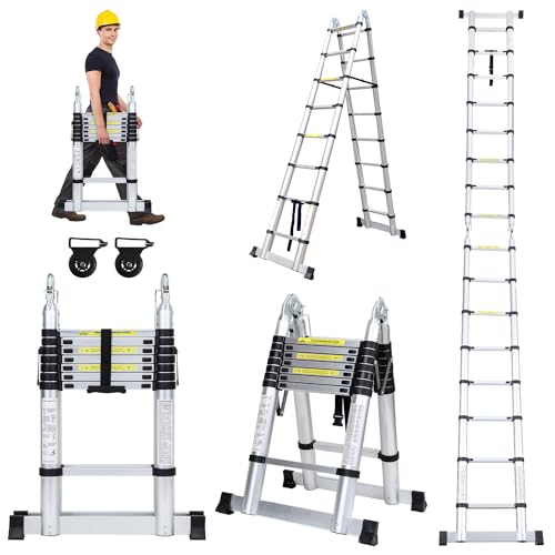 LARS360 4,4 m teleskopstege i aluminium 14,5 fot teleskopstege förlängningsförlängning bärbar stege vikbar stege multifunktionell funktion för hem, loft, kontor gör-det-själv