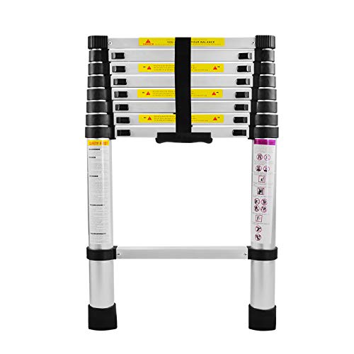 Sonnewelt 2,6 m teleskopstege, halkfri aluminium ståstege, 150 kg/330 pund lastkapacitet utdragbar stege, aluminiumstege med bärhandtag
