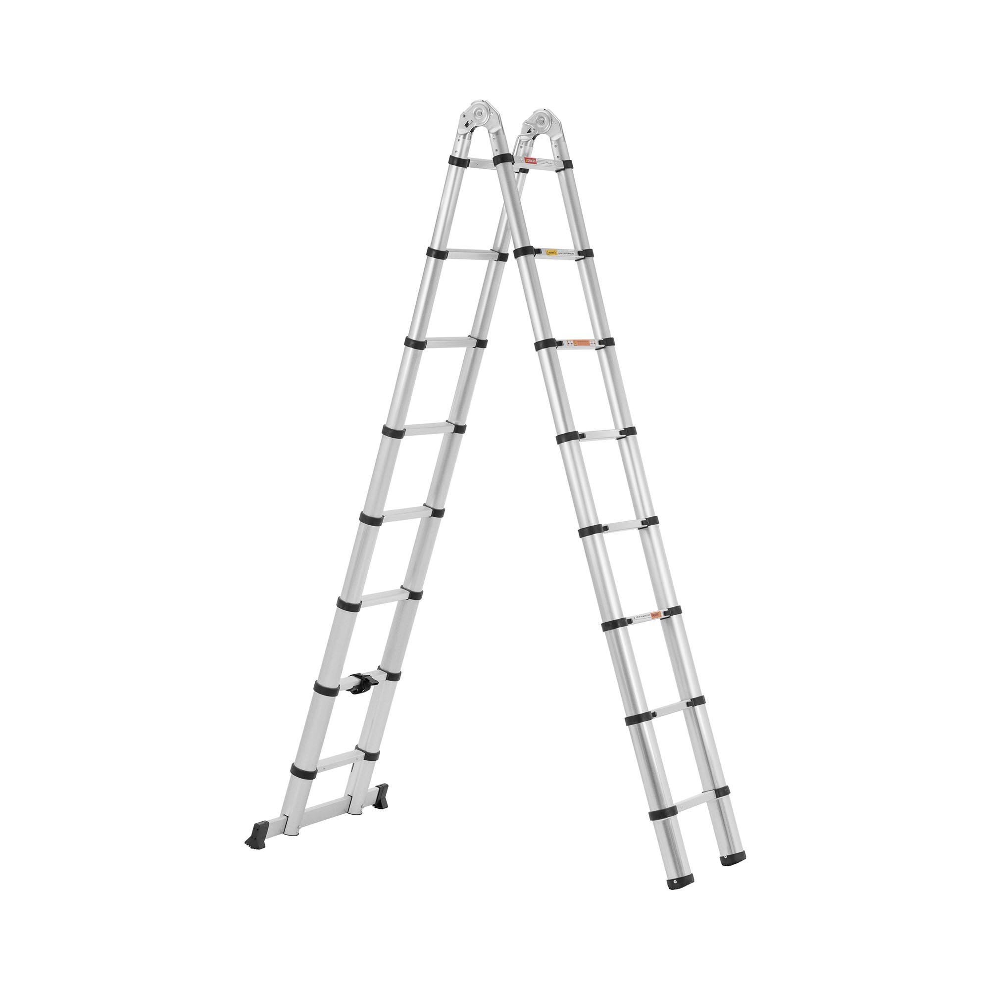 Teleskopstege av aluminium, 5 m teleskopstege, vikbar stege, 16 steg, max. Lastkapacitet 150 kg (2,5 m + 2,5 m)