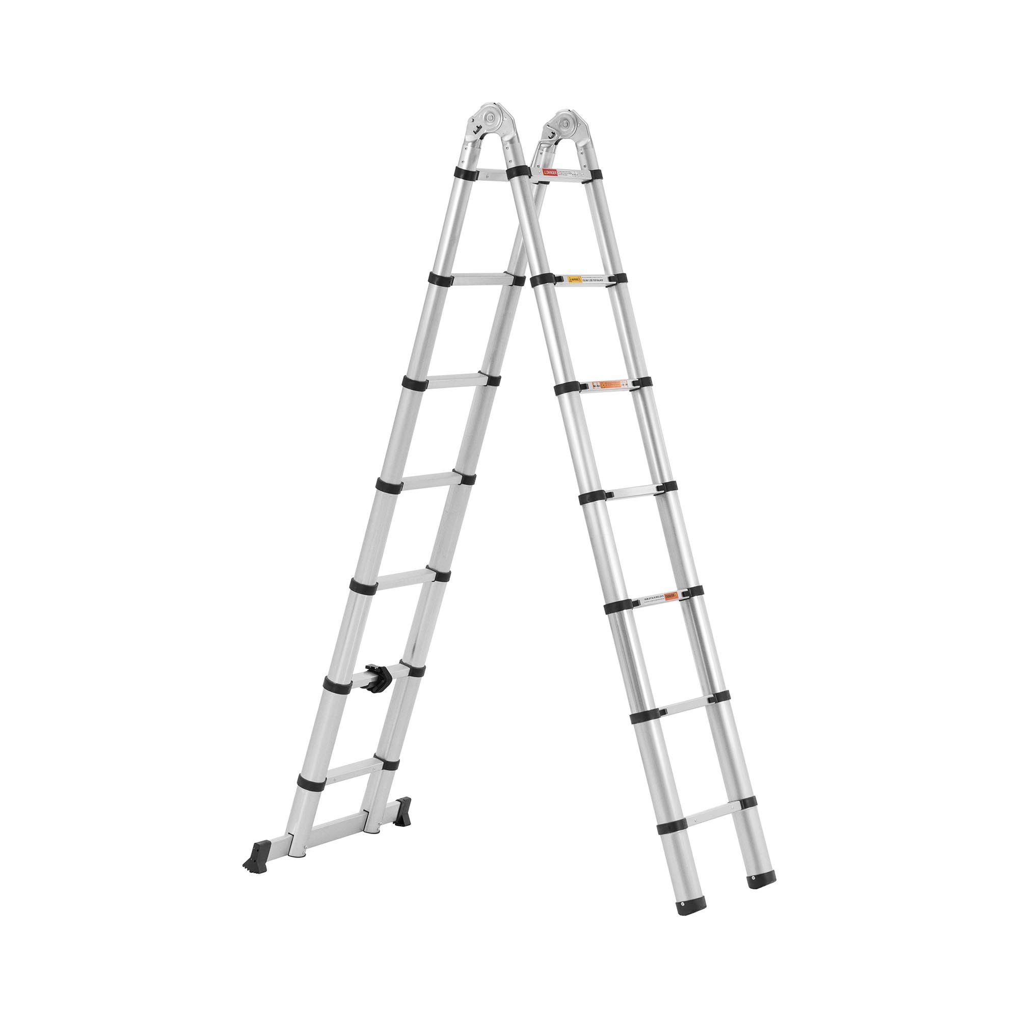 Tubiaz Teleskopstege på 4,4 m av aluminium, med flera steg och säkerhetsbrytare, utdragbar stege, bärbar och halkfri multifunktionsstege, maximal belastning 150 kg