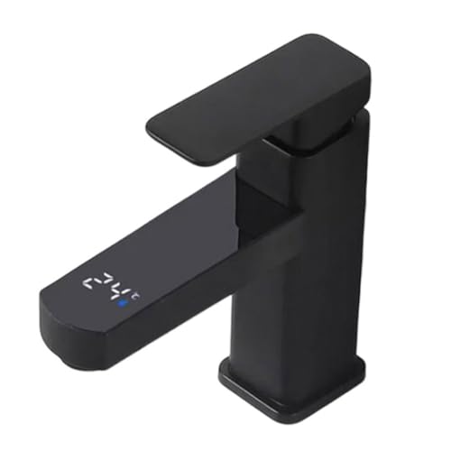 Badrumskran utrustad med övervakning avsedd för varmt plus kallt vatten rostfritt stål handfat kran lämplig för handfat i digital display temperaturkänslig (svart)