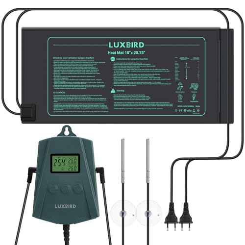 LUXBIRD Växtvärmematta med Digital Termostat, Vattentät Uppvärmningsmatta för Inomhusplantor, Groddar, Automatisk Temperaturreglering med Larm (2 Värmemattor + 1 Kontrollenhet)