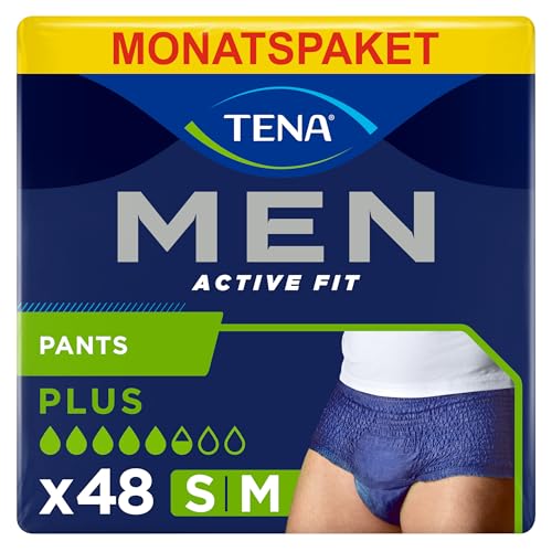 TENA män skyddsunderkläder, medium, nivå 4 svaghet i blåsen, 48 par inkontinensbyxor (12 x 4-pack) män, med en maskulin och diskret stil