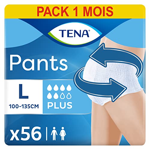Tena Pants Plus – Engångsbyxor för kvinnor och män – ventilerande unisex inkontinenstrosor – för bubbelsvaghet och urininkontinens – vit, storlek: L (56 stycken)