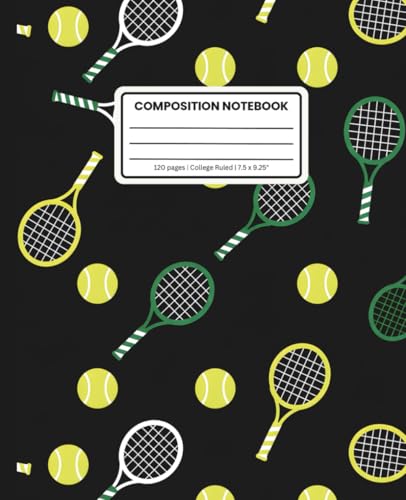 Tennis Themed College Ruled Composition Notebook | 120 Pages, 7.5x9.25", Glossy Cover | Rackets & Balls Pattern for Sports Lovers: Athletic Stationery ... Notes for Tennis Fans, Students & Coaches