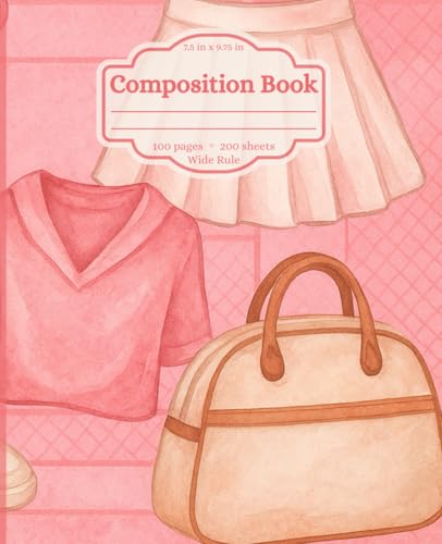 Preppy Tennis Composition Notebook – Wide Ruled, Watercolor Cover, Cute High School Tennis Journal for Girls & Teens (7.5 x 9.75 in)