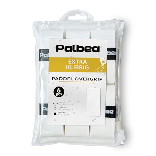Palbea Extra Klibbig Vit Paddel OverGrip - Paket om 6 - Hög svettabsorption - Halkfritt Padel Tennis Racket Greppband - Mjuk yta - Utformad för Padel Rackets.