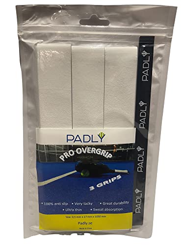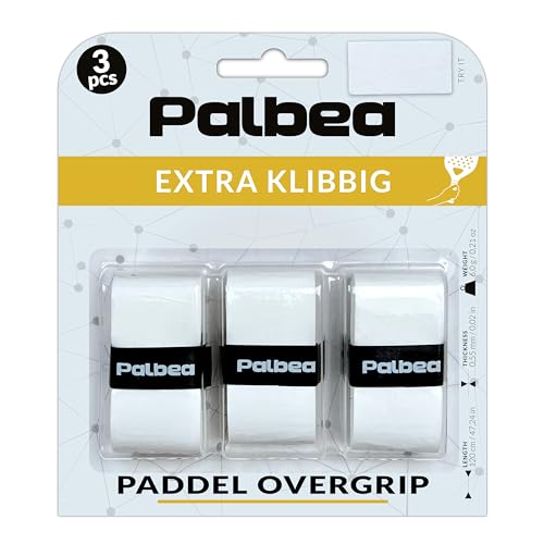 Palbea Extra Klibbig Vit Paddel OverGrip - Paket om 3 - Hög svettabsorption - Halkfritt Padel Tennis Racket Greppband - Mjuk yta - Utformad för Padel Rackets.