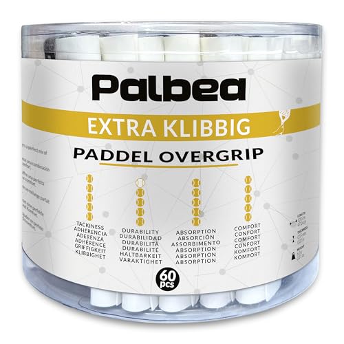 Palbea Extra Klibbig Vit Paddel OverGrip - Paket om 60 - Hög svettabsorption - Halkfritt Padel Tennis Racket Greppband - Mjuk yta - Utformad för Padel Rackets.