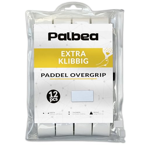 Palbea Extra Klibbig Vit Paddel OverGrip - Paket om 12 - Hög svettabsorption - Halkfritt Padel Tennis Racket Greppband - Mjuk yta - Utformad för Padel Rackets.