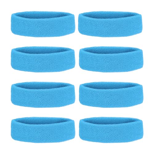PATIKIL Svettband pannband, 8 st frottétyg svettband för kvinnor män sport basket tennis atletiskt gym träning, himmelsblå