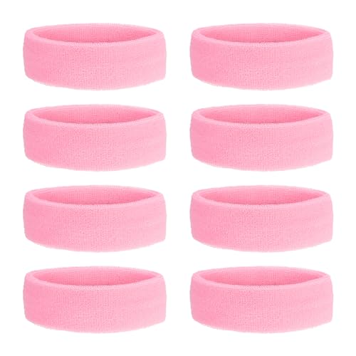 PATIKIL Svettband pannband, 8 st frottétyg svettband för kvinnor män sport basket tennis atletiskt gym träning, rosa
