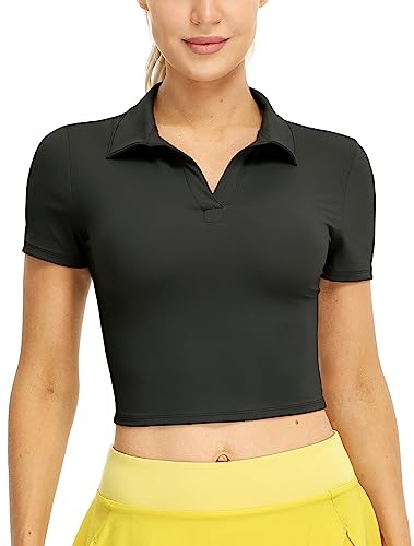 icyzone kortärmade pikétröjor för kvinnor för träning, golf, tennis, Svart, L