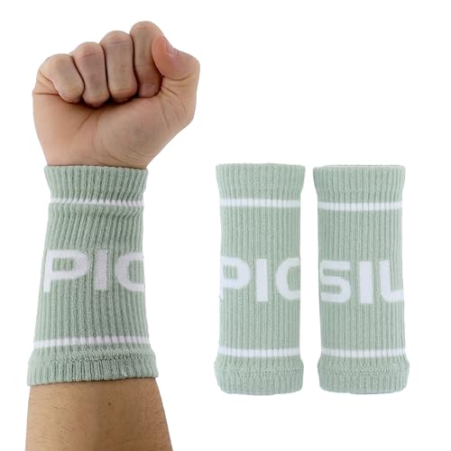 PICSIL Handledsband i bomull, absorberande och töjbara armband för träning, svettband för fitness och tennis, anti-skavning armband för män och kvinnor (Green)