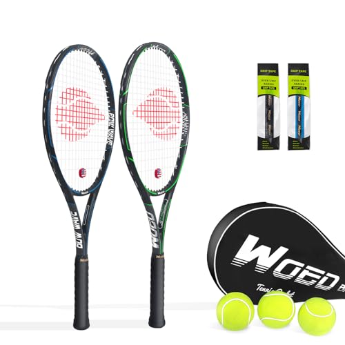 WOED BATENS Vuxen 2-spelare tennisracket perfekt för nybörjare och professionella spelare, 68,5 cm (27 tum) speed tennisracket inkluderar övergrepp, tennisväska, vibrationsfukt, skydd