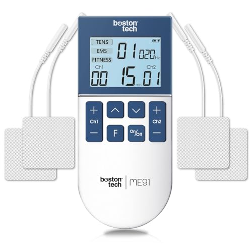 Tens EMS 3-i-1 muskelstimulator | Boston Tech ME91 | 50 program, 16 nivåer, 2 kanaler | smärtlindring och rehabilitering | Fodral + 4 återanvändbara elektroder