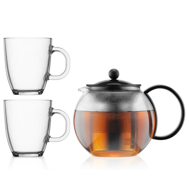 Bodum ASSAM SET tepress (rostfritt stålfilter, 1,0 L / 36 oz) och 2 muggar (0,35 L/12 oz) – svart