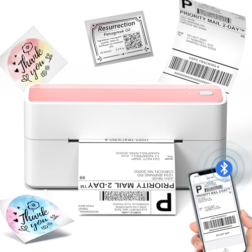 Phomemo 241BT Bluetooth etikettskrivare, 4 x 6 DHL termisk skrivare, självhäftande etikettskrivare för företag, UPS, Amazon, DHL, Shopify, Ebay - rosa