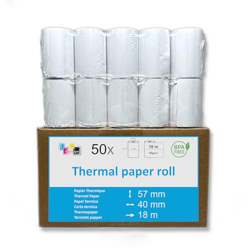50 x blåkortsterminalpappersspolar – storlek 57 x 40 x 12 mm – TPE-spolar för TPE-kortsmaskin, bisfenol A-fri termisk spole för termisk skrivare