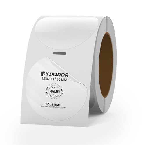YIKIADA genomskinliga prickar termoetiketter vinyl 38 mm självhäftande rulle sigill adressdekal vattentät skrivare klistermärke för logotyp streckkod QR kod lager 300 stycken
