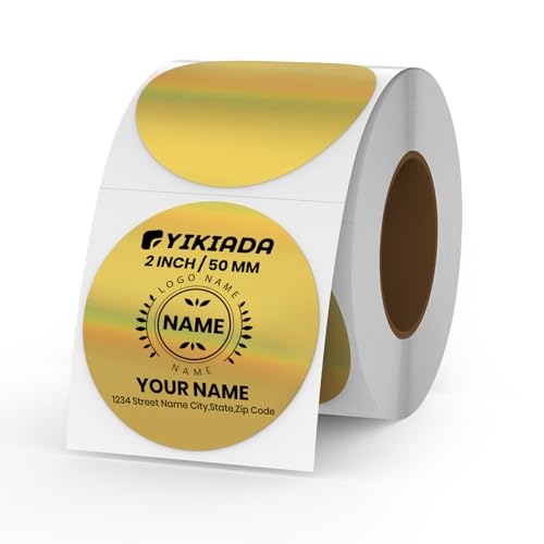 YIKIADA Guldprickar termoetiketter vinyl 50 mm självhäftande rulle adressdekal vattentät skrivare glitter klistermärke för logotyp streckkod QR-kod barn kontor hem 200 stycken