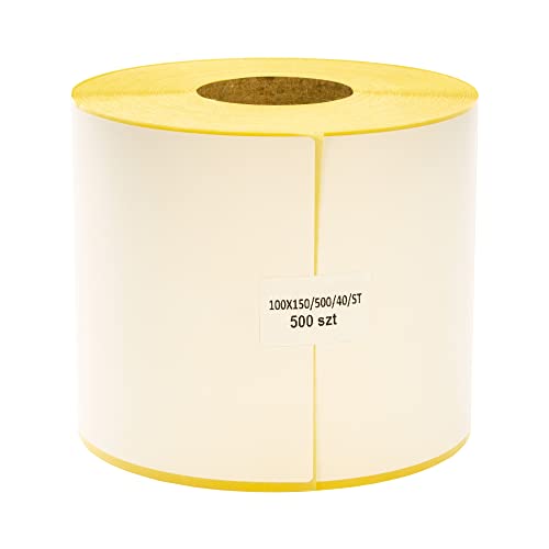 MDlabels vita termoetiketter på rulle – 100 x 150 mm – 500 stycken – hylsa 40 mm – permanent självhäftande, fraktetiketter, 4 tum x 6 tum termiska etiketter