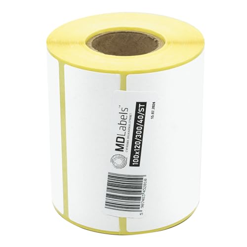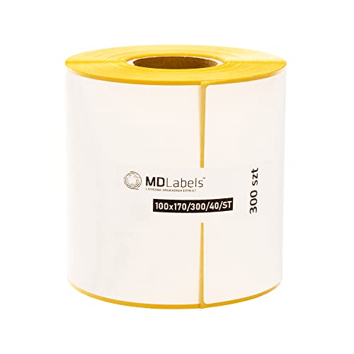 MDlabels termoetiketter 100 × 170 mm på rulle, 300 stycken, hylsa 40 mm, permanent självhäftande – fraktetiketter för termoskrivare