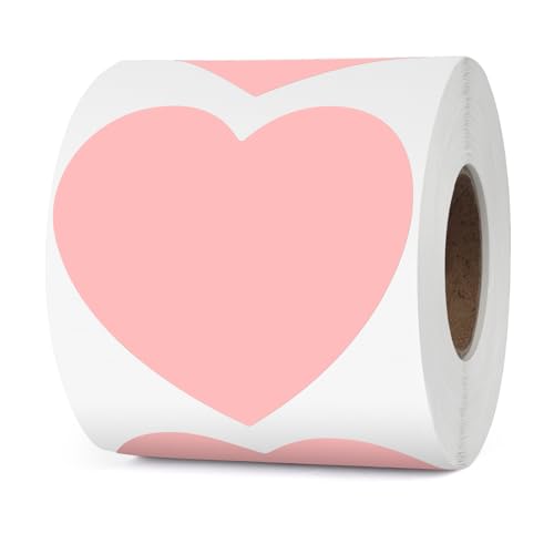 YIKIADA Rosa termoetiketter vinyl 76 mm hjärta självhäftande rulle present klistermärken vattentät skrivare termoetiketter för logotyp streckkod bröllop årsdag alla hjärtans dag 500 stycken