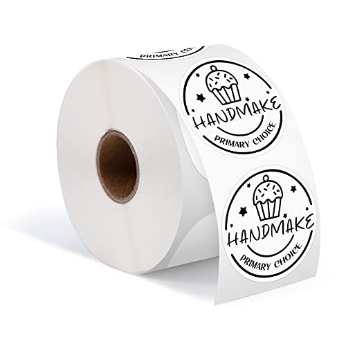 Phomemo 2 tum runda vita etiketter, 750 etiketter/rulle, kompatibel med MUNBYN, Phomemo, Polono etikettskrivare, BPA-fria fraktetiketter, självhäftande termoetiketter för logotyp, kod, gör-det-själv