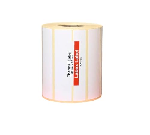 Termiska etiketter, termodirektetiketter, adressetiketter, zebra-klistermärken, termoetiketter (1 rulle, 80 mm x 20 mm)
