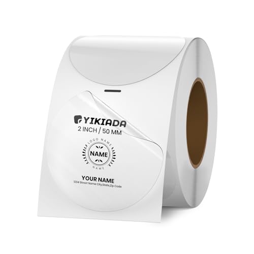 YIKIADA genomskinliga prickar termoetiketter vinyl 50 mm självhäftande rulle sigill adressdekal vattentät skrivare klistermärke för logotyp streckkod QR kod lager 300 stycken