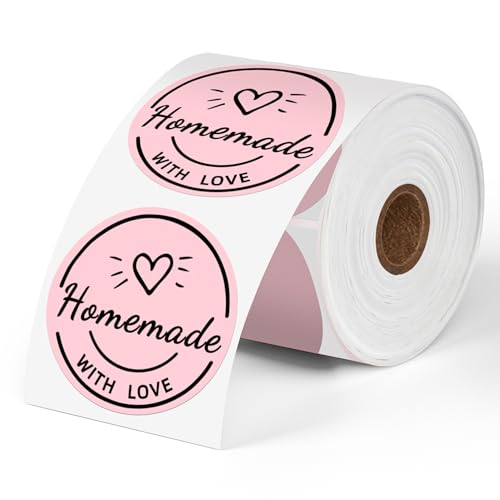 Phomemo 2 tum runda rosa etiketter, 750 etiketter/rulle, kompatibel med MUNBYN, Phomemo, Polono etikettskrivare, BPA-fria fraktetiketter, självhäftande termoetiketter för logotyp, kod, gör-det-själv