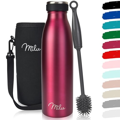 Milu rostfritt stål drickflaska 500 ml, 750 ml, 1000 ml - termoflaska, isolerad vattenflaska, läcksäker vakuumflaska med dubbla väggar, lämplig för kolsyra - inkl. Rengöringsborste (Bär, 500 ml)