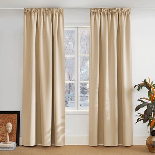 Deconovo Mörkläggningsgardin, gardin för vardagsrum, termogardin med köldskydd och öljetter, 138 x 168 cm (längd x bredd), beige, set om 2
