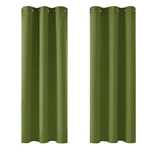 Deconovo Ogenomskinliga gardiner med öljetter för sovrum, termogardiner, ogenomskinlig gardin med köldskydd, termogardin med värmeskydd, tjock termogardin, 138 x 107 cm (längd x bredd), äppelgrön, set om 2