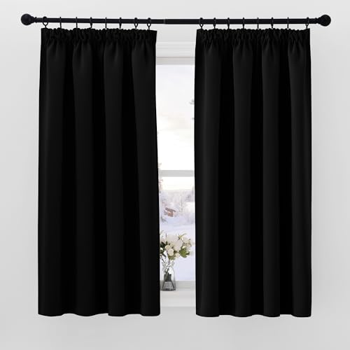 Deconovo Ogenomskinliga gardiner, mörkläggningsgardiner med öljetter, termogardin med köldskydd, termogardin med värmeskydd, tjock termisk gardin, 138 x 107 cm (längd x bredd), svart, set om 2