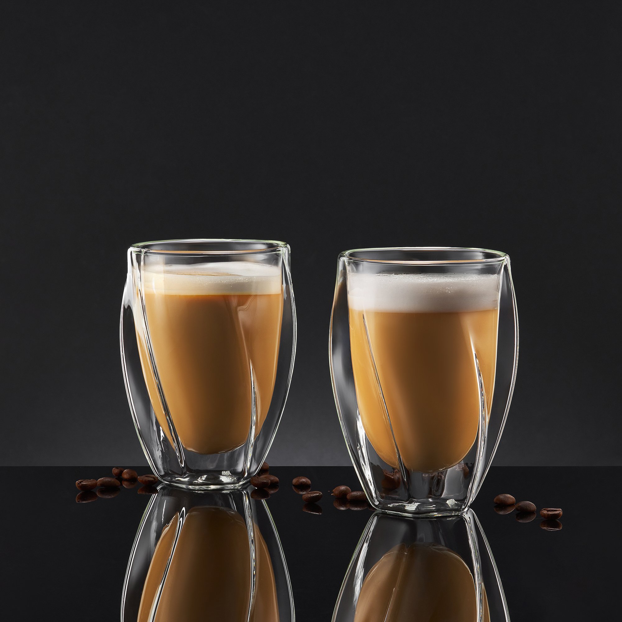 Feelino Latte Macchiato Dubbelväggiga Set Om 2 Kaffeglas, Termoglas, Isolerade Cappuccinokoppar, Handgjort för Te Och Iskaffe, 400 ml