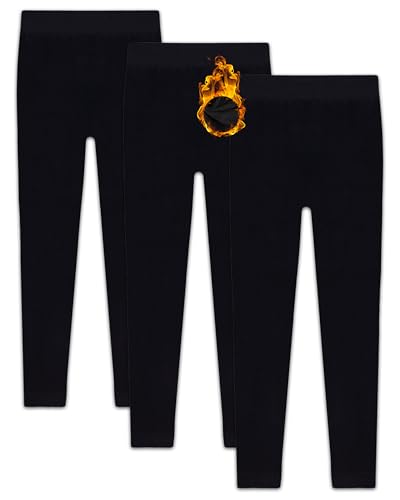 Comfyouth Termoleggings flickor vinter tjocka fodrade termo leggings barn bomull varma vinterbyxor för flickor 110–160, svart, 150
