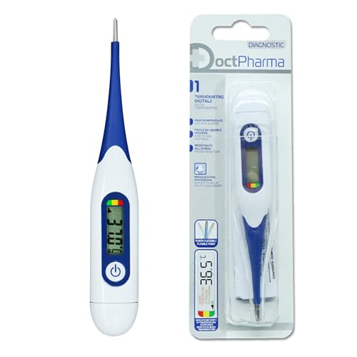Doctpharma Digital termometer med maximal skärm - snabb mätning, flexibel spets, akustisk signal, färgfeberindikator, vattentät, batterier ingår, för vuxna och barn