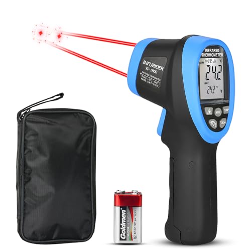 Digital Laser Infraröd Termometer (-58℉-3272℉), INFURIDER YF-1800 Kontaktlös Termometer Pistol DS=50:1, IR Pyrometer med Justerbar Emissivitet,Lasertermometer Pistol för Smidesindustrin